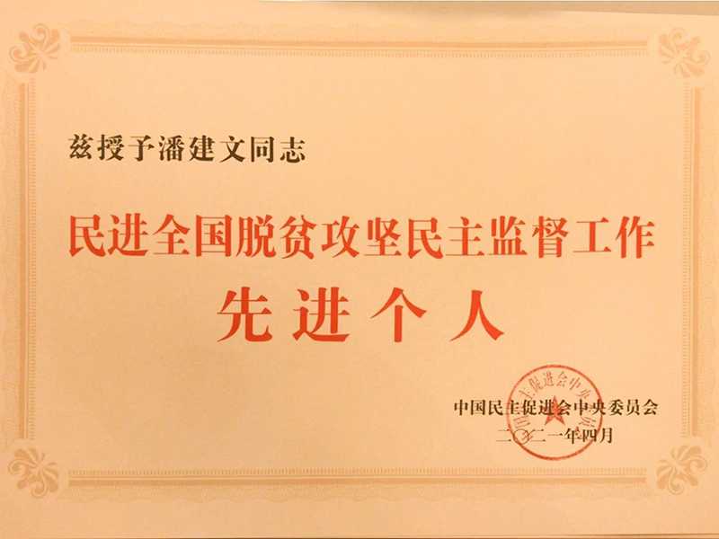 近日,河南省民進會員、乾坤環保董事長潘建文被民進授予“民進全國脫貧攻堅民主監督工作個人”榮譽稱號。