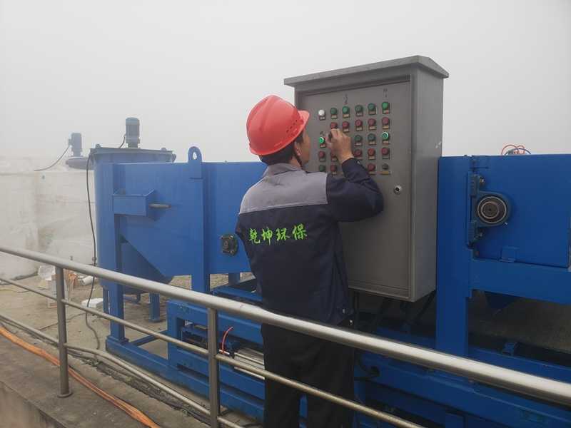 污泥首先通過的是由乾坤環保設計制造的水中造粒器,它可使污泥與藥液發生無動力混合,充分發揮絮凝的作用。之后,污泥進入重力脫水區,在該區域內,含固率大于1%的污泥可以直接進行脫水,脫水后的污泥再進入壓榨脫水區,通過了雙重脫水的污