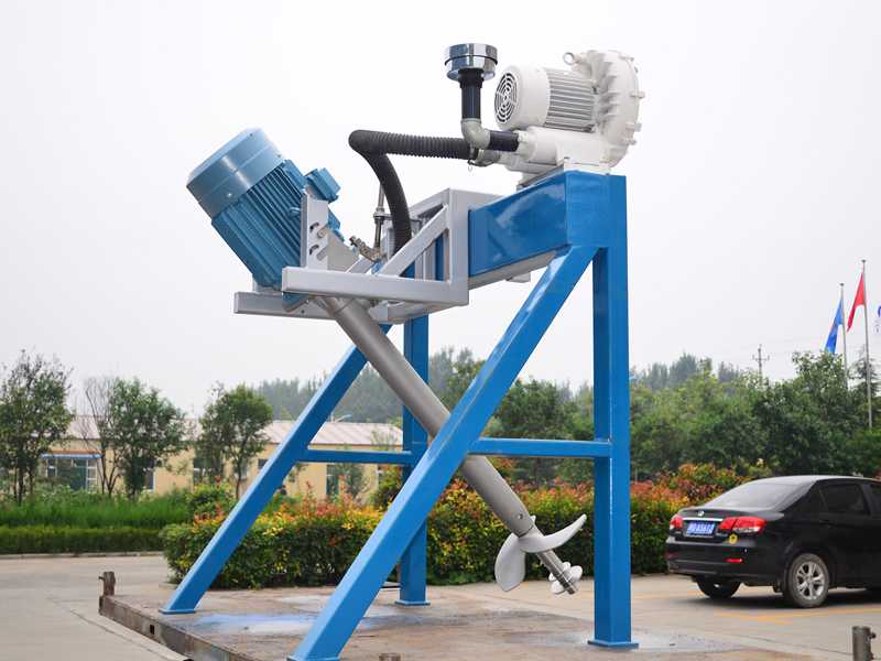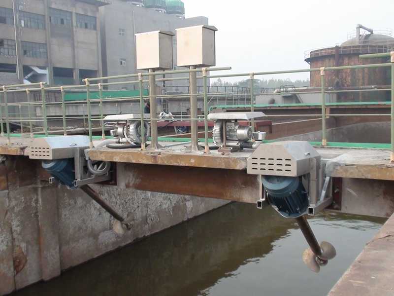 電動機帶動螺旋槳旋轉,高壓旋渦氣泵使得空氣通過進氣管進入空氣進孔達到螺旋槳,使得其水混合造成微小氣泡,汽水混合物水平、豎直方向離開螺旋槳,達到有效混合和向水中曝氣。
