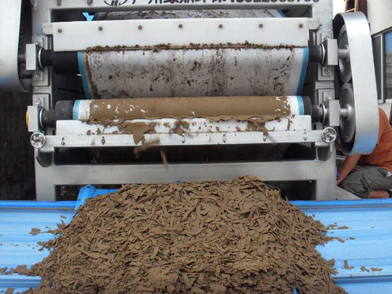 一級濃縮的出料,經螺旋或者皮帶輸送機(也可直接連接)送入干化進料箱。在螺旋布料器的作用下,物料被均勻的布在網帶上。經預壓脫水后,隨著壓榨軸的變徑,壓力逐漸增大,達到脫水干化之目的,出泥干化之目的, 出泥含固率高達35%-45%。