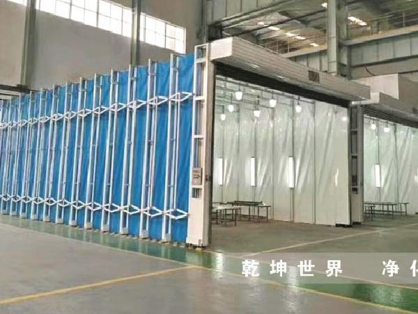 產品概況·伸縮式移動房是專門為解決較大型工件撤運周轉困難而研發(fā)的實用型產品!·生產工藝上簡化了不斷用車間行車周轉吊運的生產工序;·傳動機構全方位潤滑,大大延長伸縮房體使用壽命;·整體為框架傳動結構,每組框架間均有阻燃PVC不密封連接:·工作中伸縮移動房體沿地面鋪設的軌道伸縮行走,采用兩邊分別驅動,互相連鎖的方式運行,機械運行安全穩(wěn)定;·工作區(qū)內安裝有防爆照明燈,可滿足生產中的照度需要·可根據(jù)顧客的實際生產需要定做各種型號的非標尺寸,目前工程實例已做到跨度25米,高度15米,伸縮長度100米:設備用途伸縮式噴漆間或噴烘一體噴漆間:(漆霧凈化方式:無泵水幕式噴漆過濾器,干式漆霧過濾,無泵水旋式漆霧凈化;伸縮噴漆間可設計噴烘兩用式。)伸縮式噴砂房潔凈工作間探傷室室外防雨棚室外倉庫打磨房防塵過度通道
